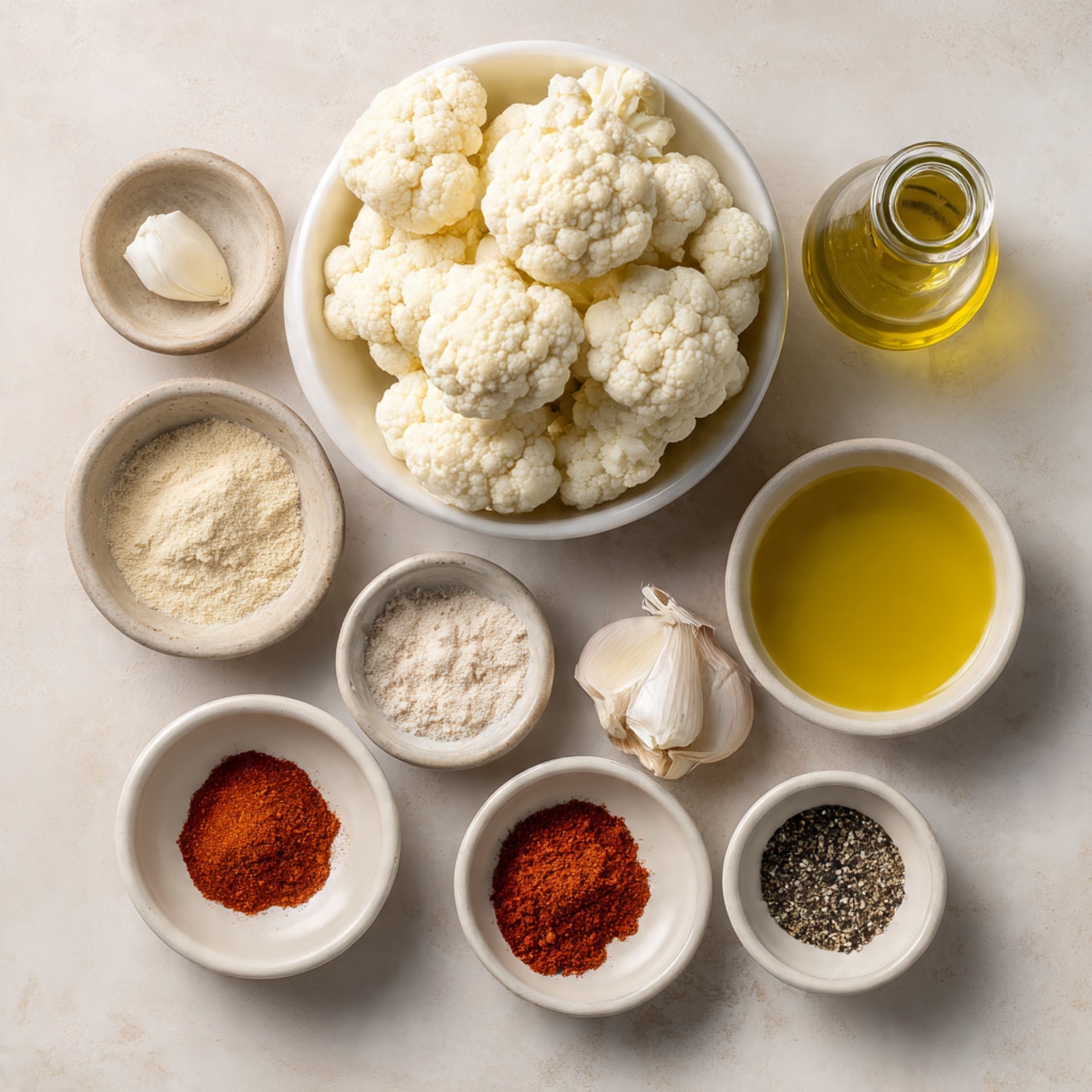 - Cauliflower: 1 medium head, cut into 5 to 6 cups florets, this is the heart of the recipe and turns tender inside while the edges brown beautifully.