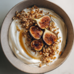 A refreshing and indulgent yogurt bowl topped with warm, caramelized airfried figs, a drizzle of honey, and a crunchy sprinkle of pistachios. Perfect for breakfast, dessert, or an elegant snack.