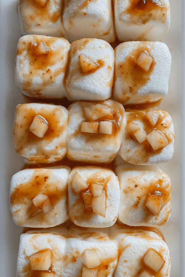 Soft, fluffy marshmallows coated in a sweet apple glaze with a hint of cinnamon, perfect for a quick cozy treat.