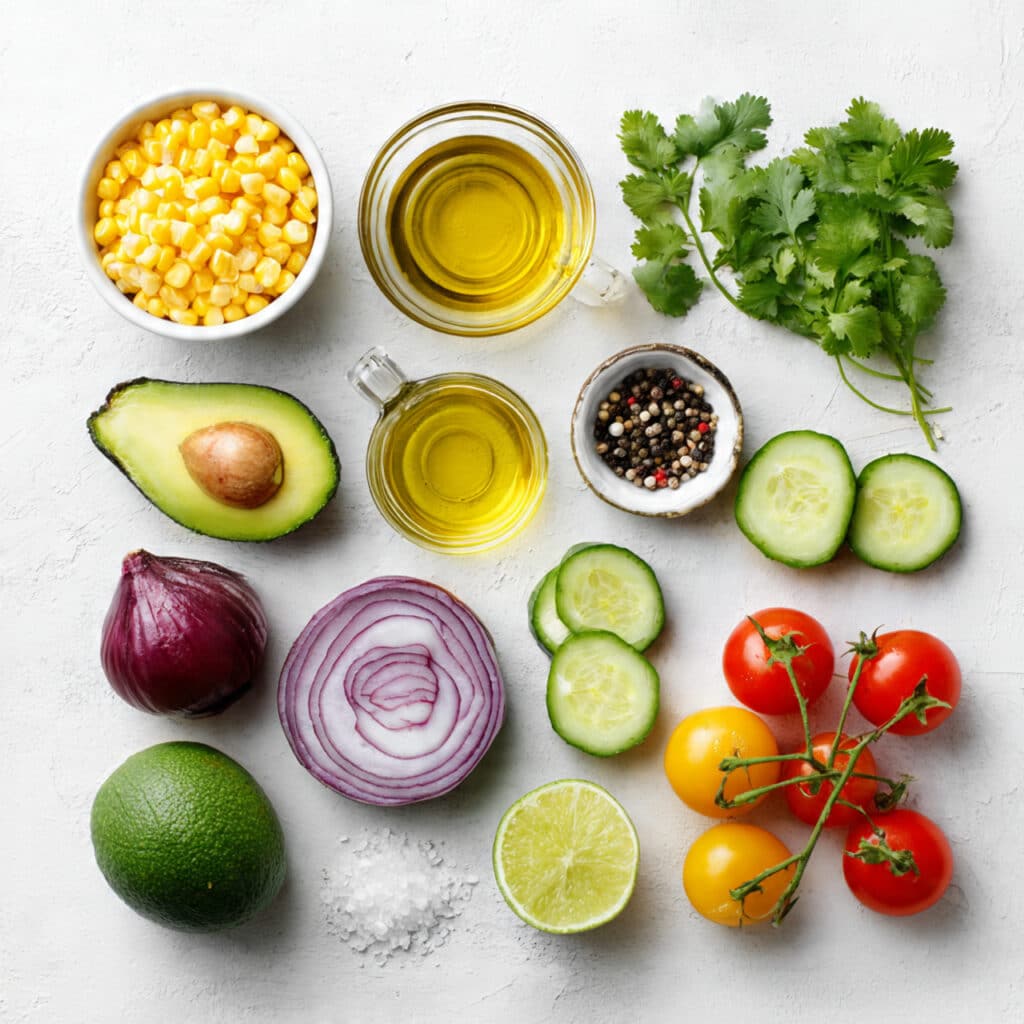 The magic here is all in the contrast. The corn brings a natural sweetness, the avocado adds creamy richness, and the lime juice cuts through with zing. Red onion adds sharpness, while tomatoes and cucumber keep it fresh and juicy. Every bite has a little of everything.