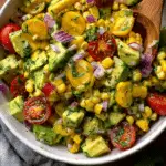 This Avocado and Corn Side Salad is a bright, fresh, and flavorful mix of creamy avocado, sweet corn, juicy tomatoes, crisp cucumber, and a zesty lime dressing. It’s the perfect quick salad for summer BBQs, potlucks, or taco nights.