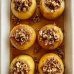 This recipe takes me straight back to my grandmother’s kitchen, where apples were never just eaten raw. She’d stuff them with all sorts of cozy ingredients—brown sugar, butter, cinnamon, and sometimes even raisins—then pop them into the oven until they were soft, syrupy, and utterly irresistible. It was a dessert born from simplicity, and yet it felt like the most special treat. That memory inspired this version, which stays true to those nostalgic roots while adding just a touch more richness and texture.