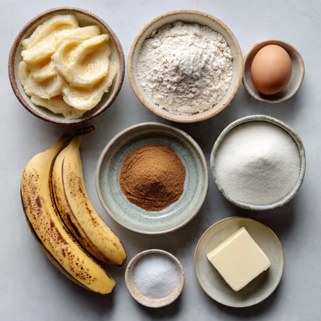 - Ripe bananas: 1 cup mashed, which adds moisture and natural sweetness.
