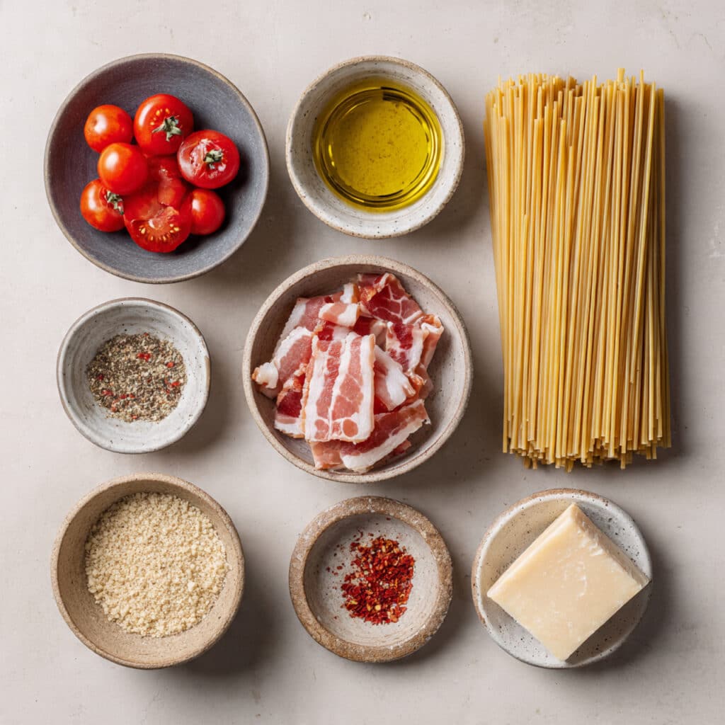 Pecorino Romano: Sharp, salty, and a little earthy, this cheese gives the final bowl its signature edge and ties the tomato and pork together beautifully.