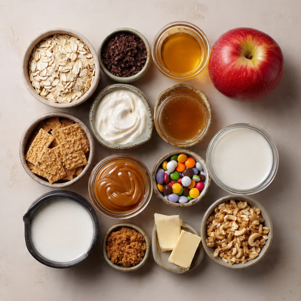 - Optional toppings: chopped peanuts, mini chocolate chips, crushed graham crackers, colorful candies