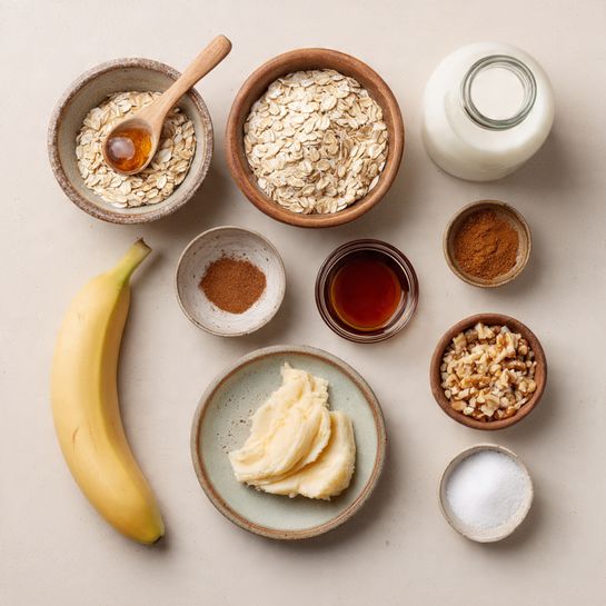 - Ripe Bananas: 2 — One mashed into the oats and one sliced for caramelising.