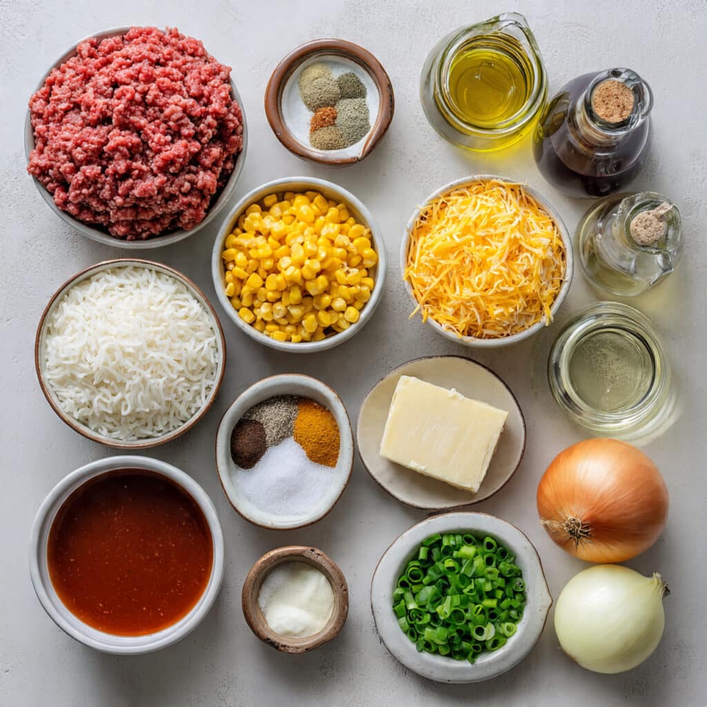 Ingredients You Will Need for This Cheesy Beef Taco Rice