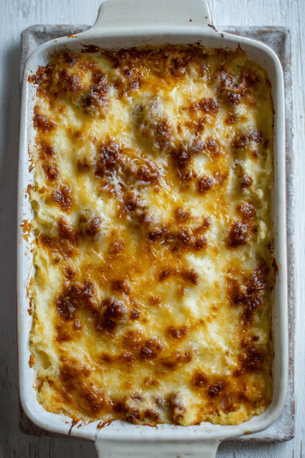 Presentation matters! Garnish with a sprinkle of fresh thyme or chives before serving. Serve in a beautiful rustic baking dish and bring it straight to the table bubbling hot. That cheesy golden top is already your best decoration.
