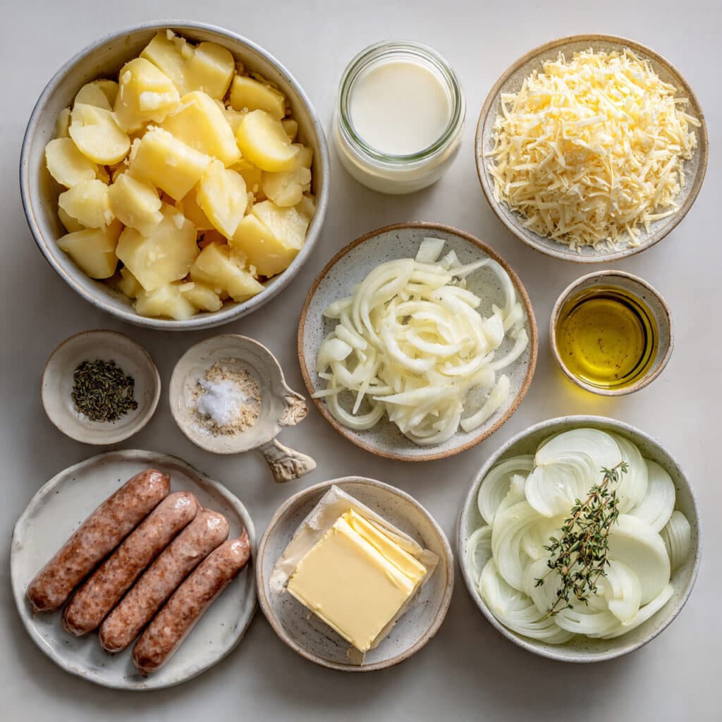 - Sausages: 6 pork or chicken sausages — cooked and sliced for the meaty layer.