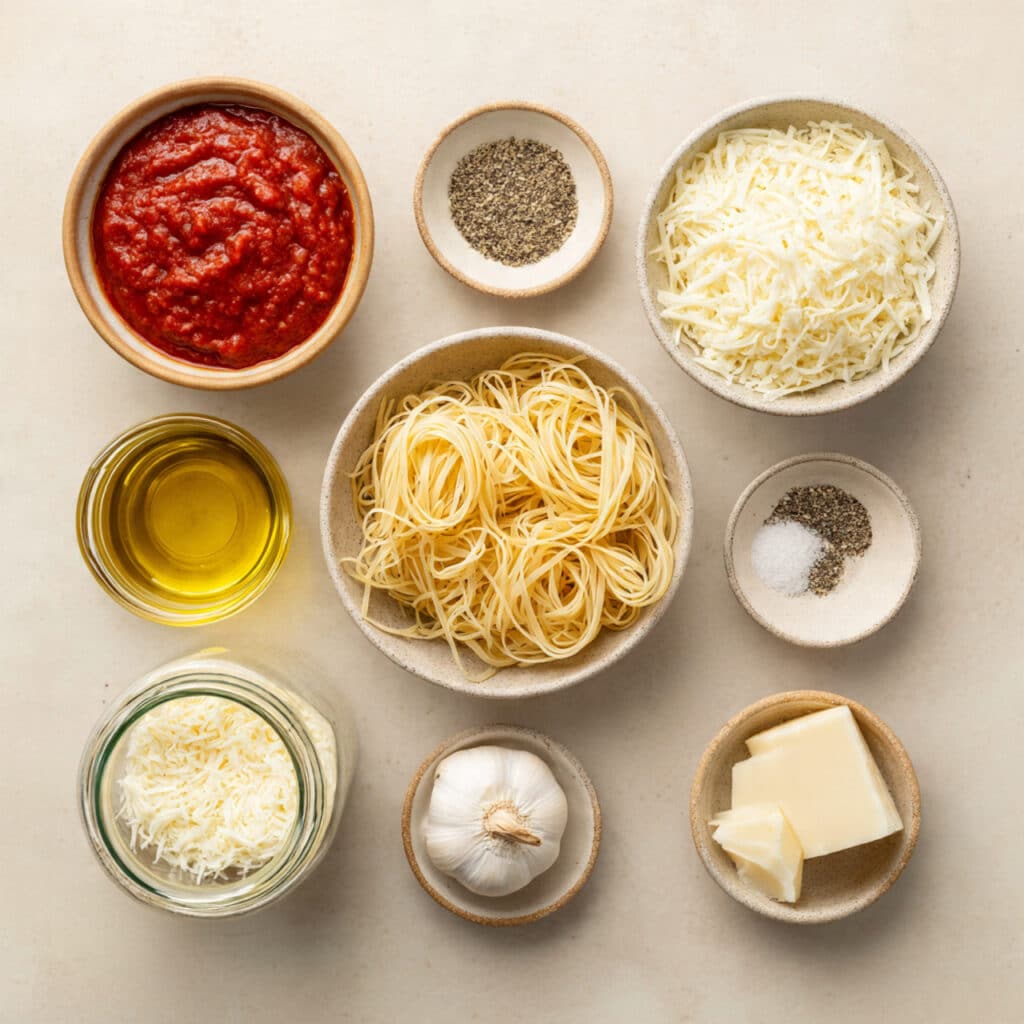 A comforting bowl of cheesy marinara pasta made with tender noodles, rich tomato sauce, and perfectly melted cheese for a simple yet deeply satisfying meal.