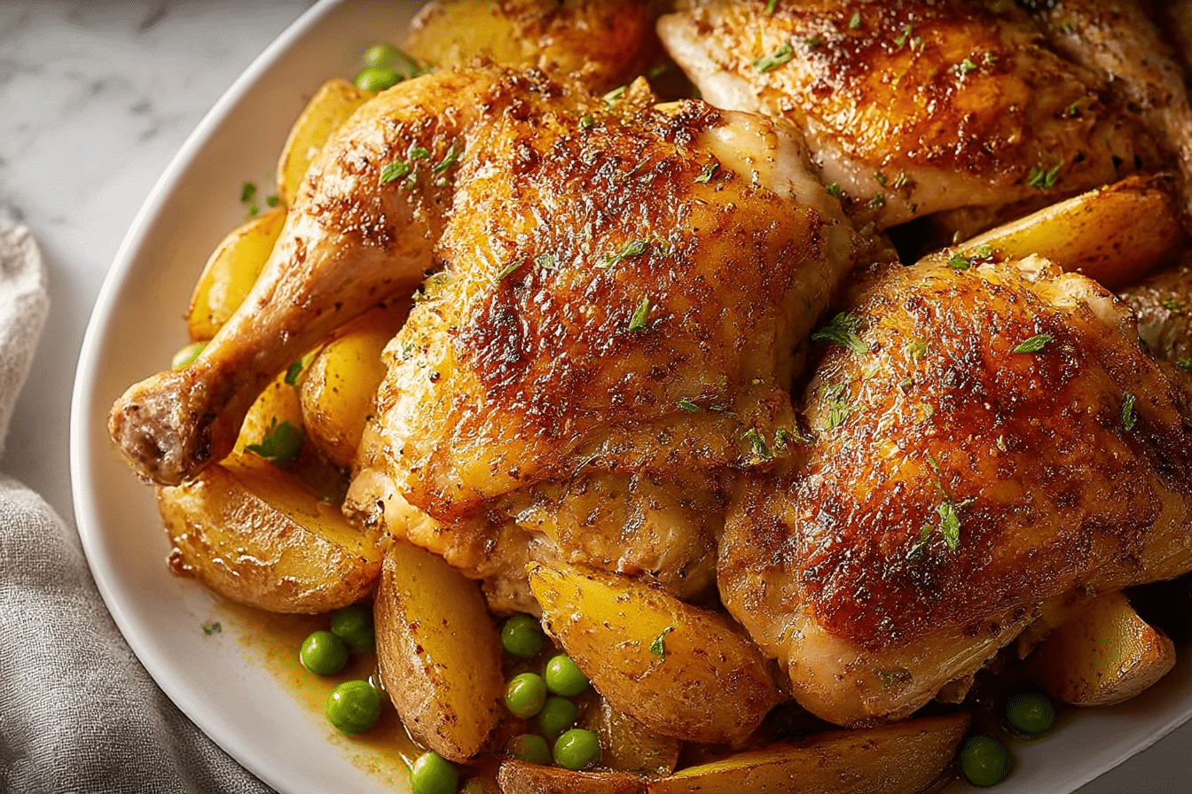 Crowd-Pleasing: Juicy chicken, crispy potatoes, and rich sauce—what’s not to love?