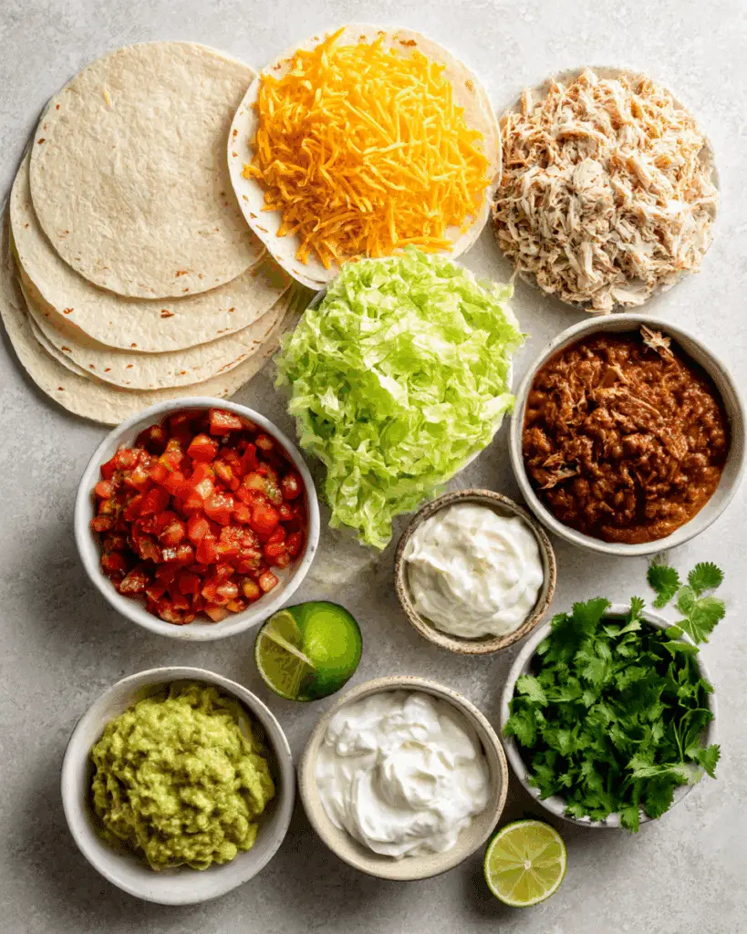 - Flour Tortillas: 4 large – soft, pliable base that crisps beautifully.