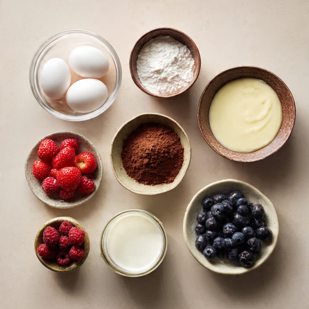The outer shell should crack gently under your fork, while the inside stays soft and chewy. The cocoa adds depth, while the cream and berries bring balance and freshness.