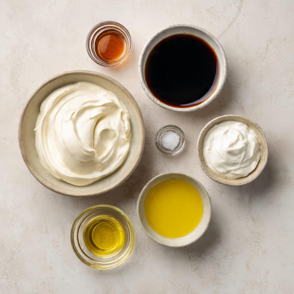 Coconut yoghurt: This ingredient does all the heavy lifting, delivering body, flavor, and a subtle tang that keeps the cream from feeling flat.