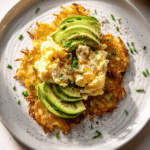 Crispy hash browns topped with creamy avocado and soft scrambled eggs make an easy, satisfying breakfast or brunch that feels comforting and fresh at the same time.