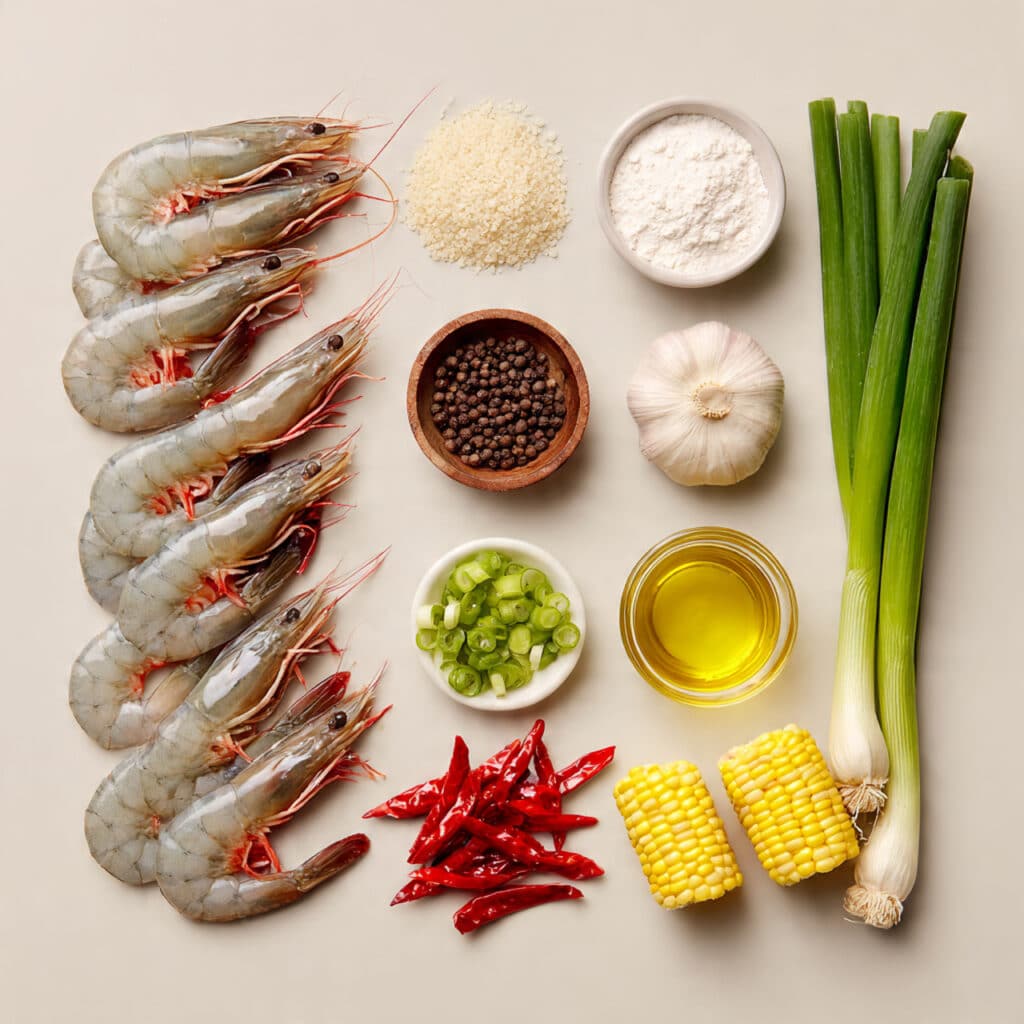 - Oil (neutral, for frying): About 1 cup – Used for crisping the shrimp and aromatics.