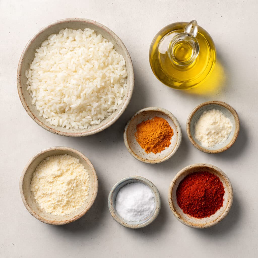 - Cooked white rice: 2 cups, the base that crisps beautifully when baked.