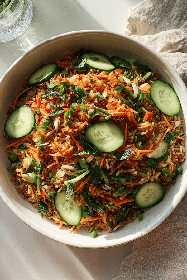 It is the contrast that makes it special, crispy rice meets fresh vegetables, and a bright dressing ties everything together. This one’s a total game-changer for anyone who thinks salads are boring.
