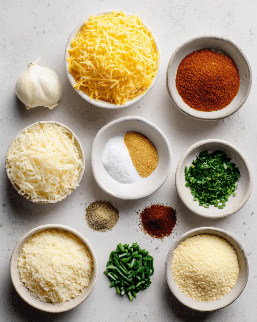 - Grated Parmesan Cheese: ½ cup (adds sharpness and extra crisp factor)