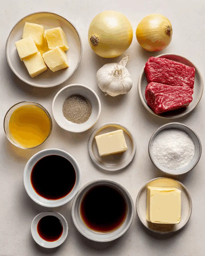 The trick to ultra-tender steak is simmering gently and not overcooking. The onions should be soft enough to melt into the sauce, while the gravy has a deep, beefy richness with a hint of umami from the soy and Worcestershire.