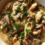A creamy and comforting dairy free mushroom chicken made with simple ingredients and rich flavors, perfect for a cozy meal.