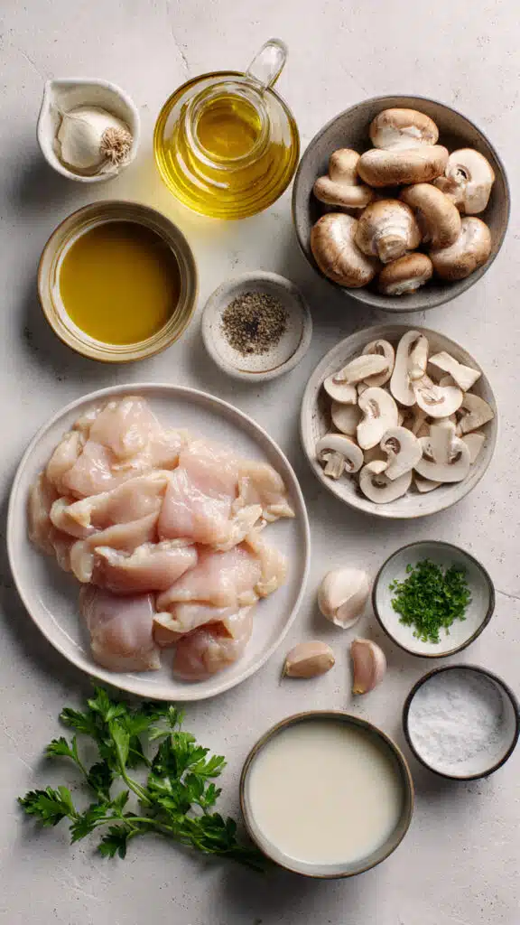 The chicken stays tender and juicy while the mushrooms add a soft yet slightly meaty bite. The sauce wraps everything in a smooth, creamy layer that feels rich but not heavy. Each bite gives you warmth, depth, and a little hint of freshness from the herbs.