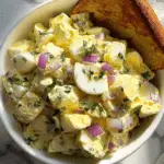 The texture should be soft but chunky, not mushy. You’ll get creamy richness from the mayo, slight tang from the mustard, and that wonderful contrast of crunchy onion and fresh herbs. Seasoning makes all the difference—don’t skip the salt and pepper.