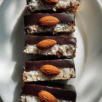The beauty of these bars is how they manage to feel decadent while still being made with simple, wholesome ingredients. The chocolate coating melts gently as you bite in, giving way to that soft coconut center, while the almonds add just the right amount of crunch.