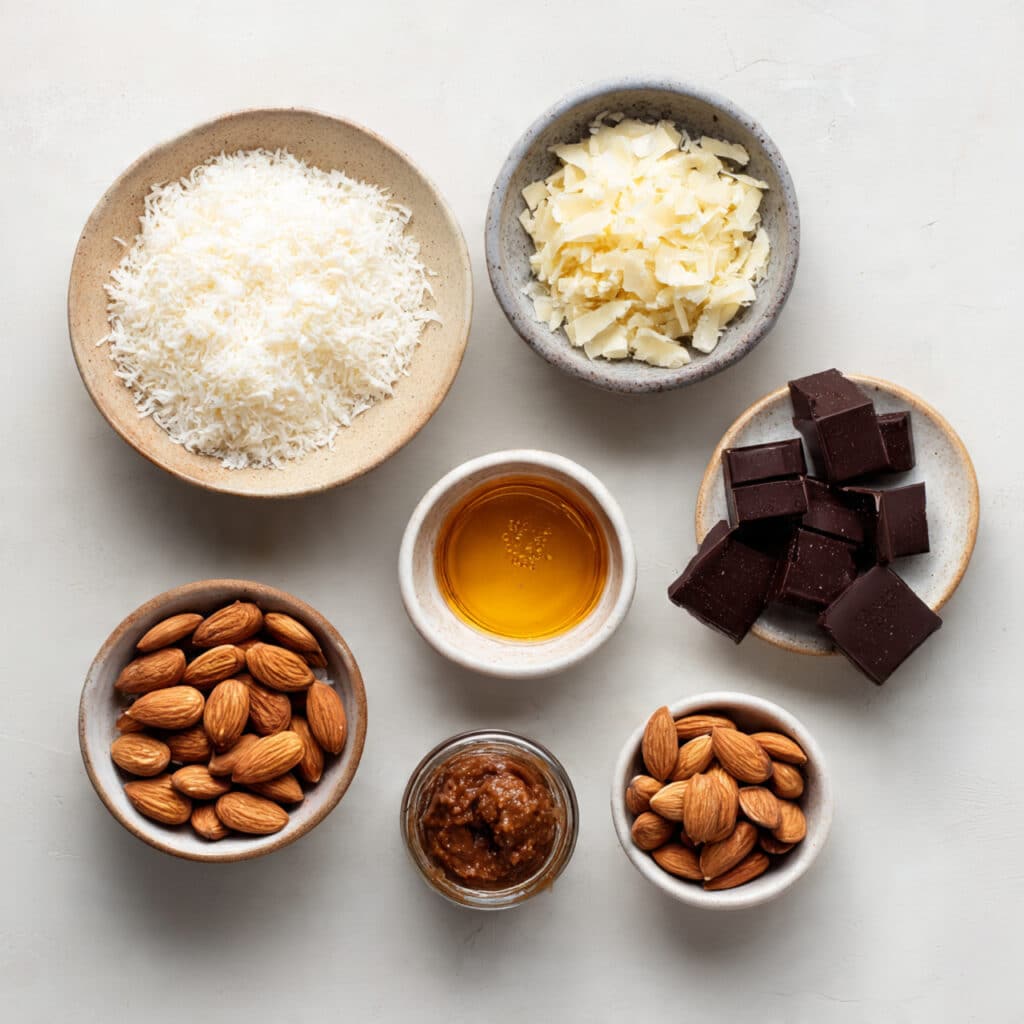 - Combine Ingredients: Mix coconut, almond butter, honey, and vanilla until well combined