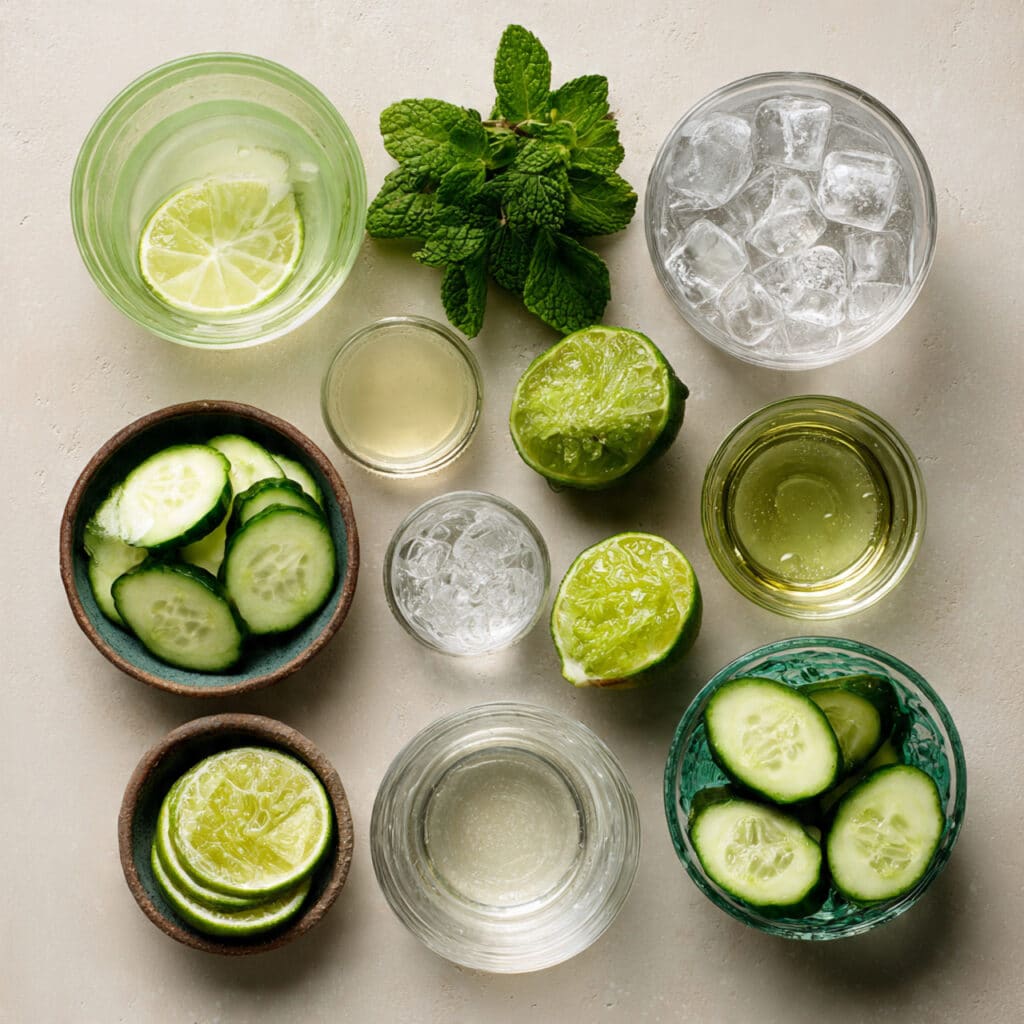Cucumber: Naturally cooling and packed with water, cucumber is the refreshing star here. Its subtle flavor sets the clean, green tone of the drink.