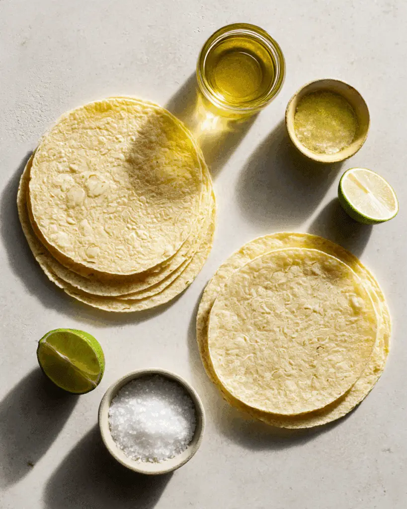 Corn Tortillas: Their texture and flavor are perfect for frying. They crisp beautifully while holding shape and absorb just enough oil to get golden without greasy.