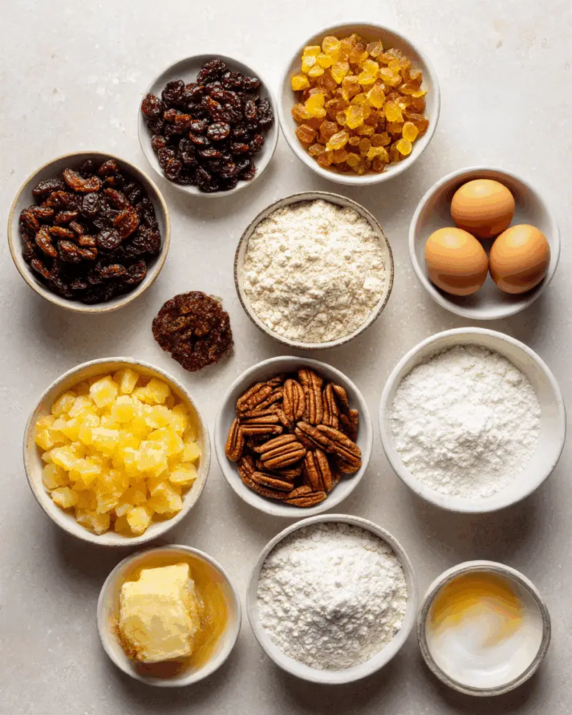 Fruit cake dates back to ancient Rome, where pomegranate seeds, pine nuts, and barley mash created a dense, energy-rich loaf. Over time, it evolved across cultures, with the British refining it into a holiday centerpiece, often aged and soaked in spirits. In the United States, it took on new life as a celebratory bake loaded with candied fruits and nuts. Today’s version blends old-world technique with a fresher, homemade approach that celebrates flavor over formality.