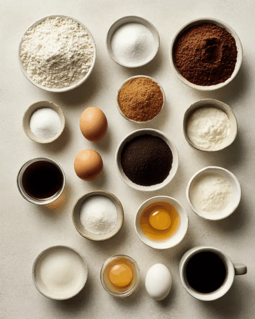 - Unsweetened Cocoa Powder: ¾ cup – Delivers deep, dark chocolate flavor.