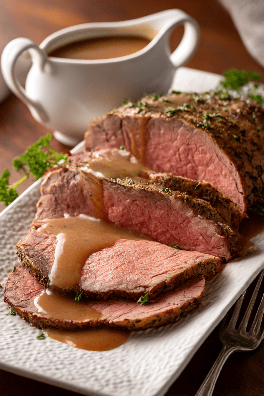Want to wow your guests? Plate the slices neatly on a warm platter, drizzle with gravy, and sprinkle fresh thyme on top. Serve with rustic sides and a classic linen napkin for that perfect Sunday supper vibe.