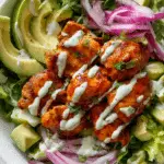 This Nashville Hot Chicken Salad blends crispy, spicy chicken with cool, crisp greens, creamy avocado, tangy pickles, and a drizzle of ranch for a bold and refreshing meal.