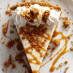This no-bake gingerbread cheesecake is rich, creamy, and filled with warm holiday spices. Set atop a buttery gingersnap crust and finished with whipped cream and caramel, it’s the perfect festive dessert without turning on the oven.
