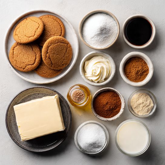 - Gingersnap cookies: 2 cups, finely crushed for the crust’s bold flavor and crunch.