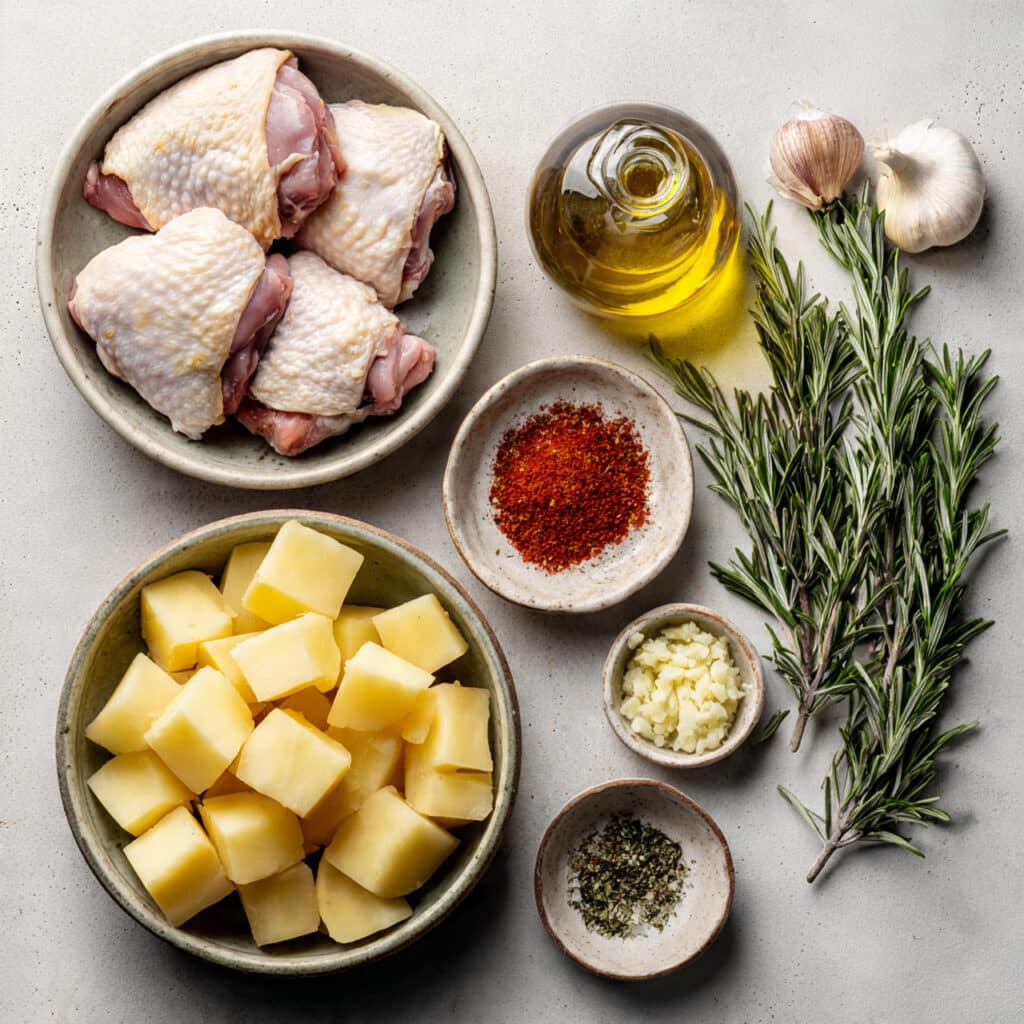 Golden roasted potatoes and juicy chicken thighs come together in this simple, flavorful one-pan meal. Seasoned with garlic, rosemary, and paprika, it’s the perfect cozy dinner with minimal cleanup.