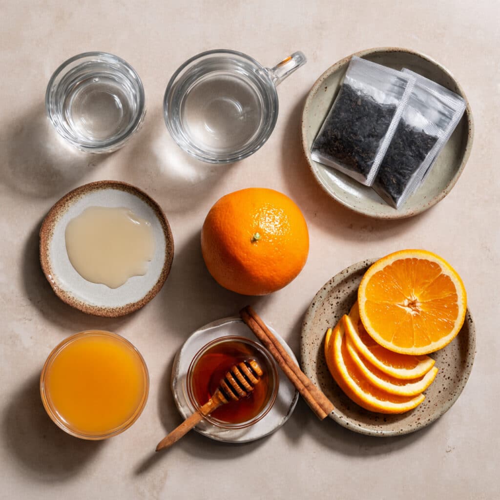 A warm, soothing citrus tea made with black tea, fresh orange slices, honey, and a splash of orange juice. It is cozy, bright, and perfect for a relaxing afternoon or a light homemade drink to share.