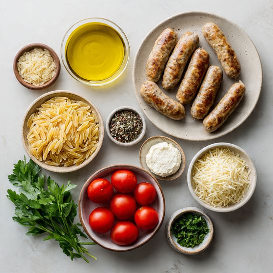 Ingredients in Orzo Chicken Sausage Skillet with Boursin Cheese