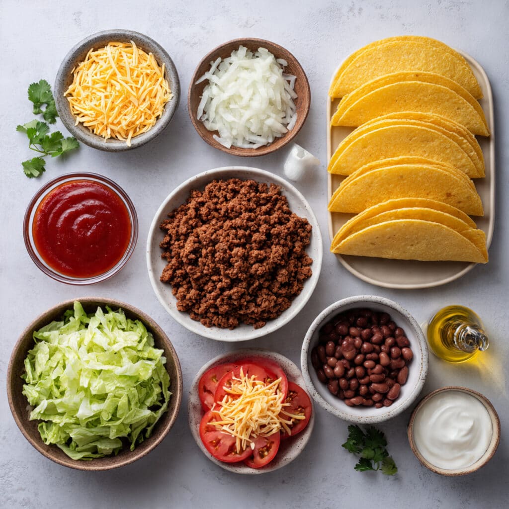 - Refried Beans (optional): ½ cup — Spread inside shells for extra richness.