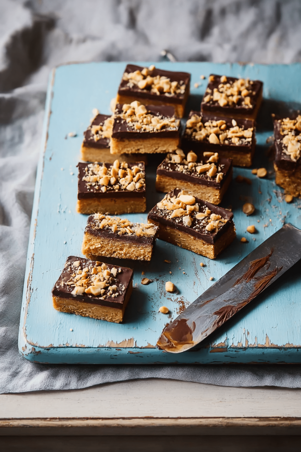 I first made these on a rainy weekend when I had a jar of peanut butter, half‑used oats, and a sudden craving for something sweet but sturdy. I baked a thick bar, spread melted chocolate over it, sprinkled chopped peanuts, and got lost in the kitchen trying to cut it before it cooled. Since then, it’s become the dessert I bring to potlucks, because it travels, holds up, and disappears fast.