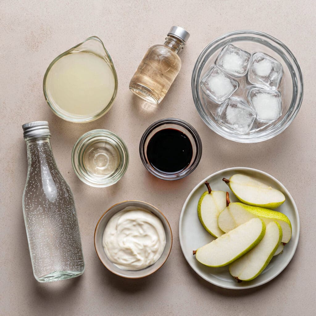 This recipe was born from a love of classic cream sodas and a desire to make something a little different. Pear has a subtle, almost floral sweetness that works beautifully in drinks, especially when paired with cream. After a few test glasses and plenty of sipping, this version became the one, simple, balanced, and endlessly drinkable.
