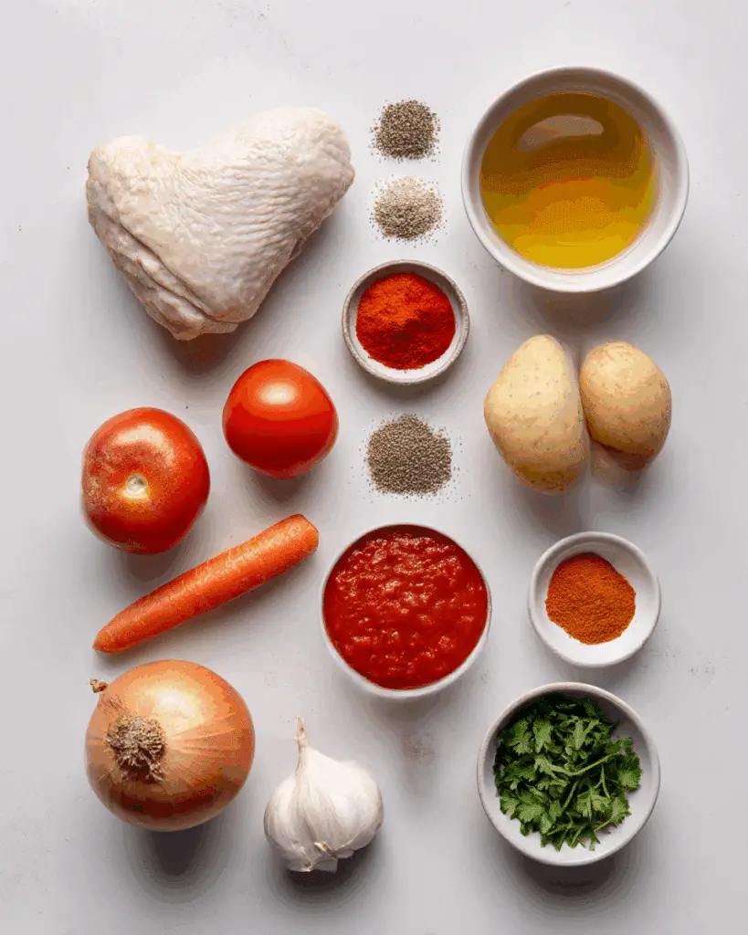 - Bone-In Chicken Thighs and Drumsticks: 2 pounds – Moist, flavorful, and perfect for stewing.