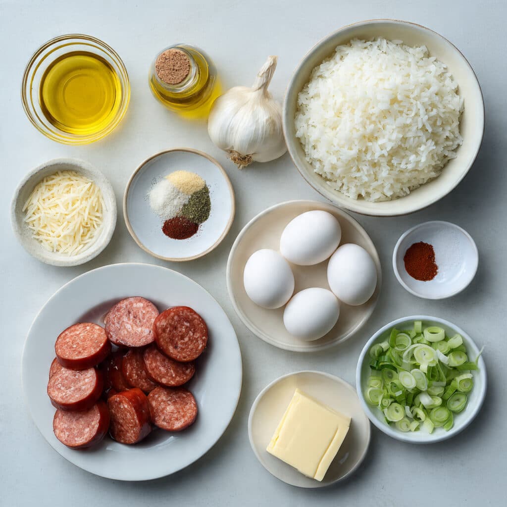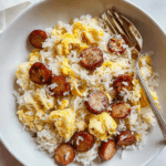 A hearty one-pan dish made with fluffy rice, browned smoked sausage, and soft scrambled eggs. It is savory, comforting, and quick enough for breakfast, brunch, or a simple weeknight meal.