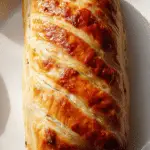 Score the pastry in diagonal lines for a professional look. Garnish with a few fresh dill sprigs and a lemon twist on the side. Serve it sliced on a wooden board for rustic flair, or plated with sauce for elegance.