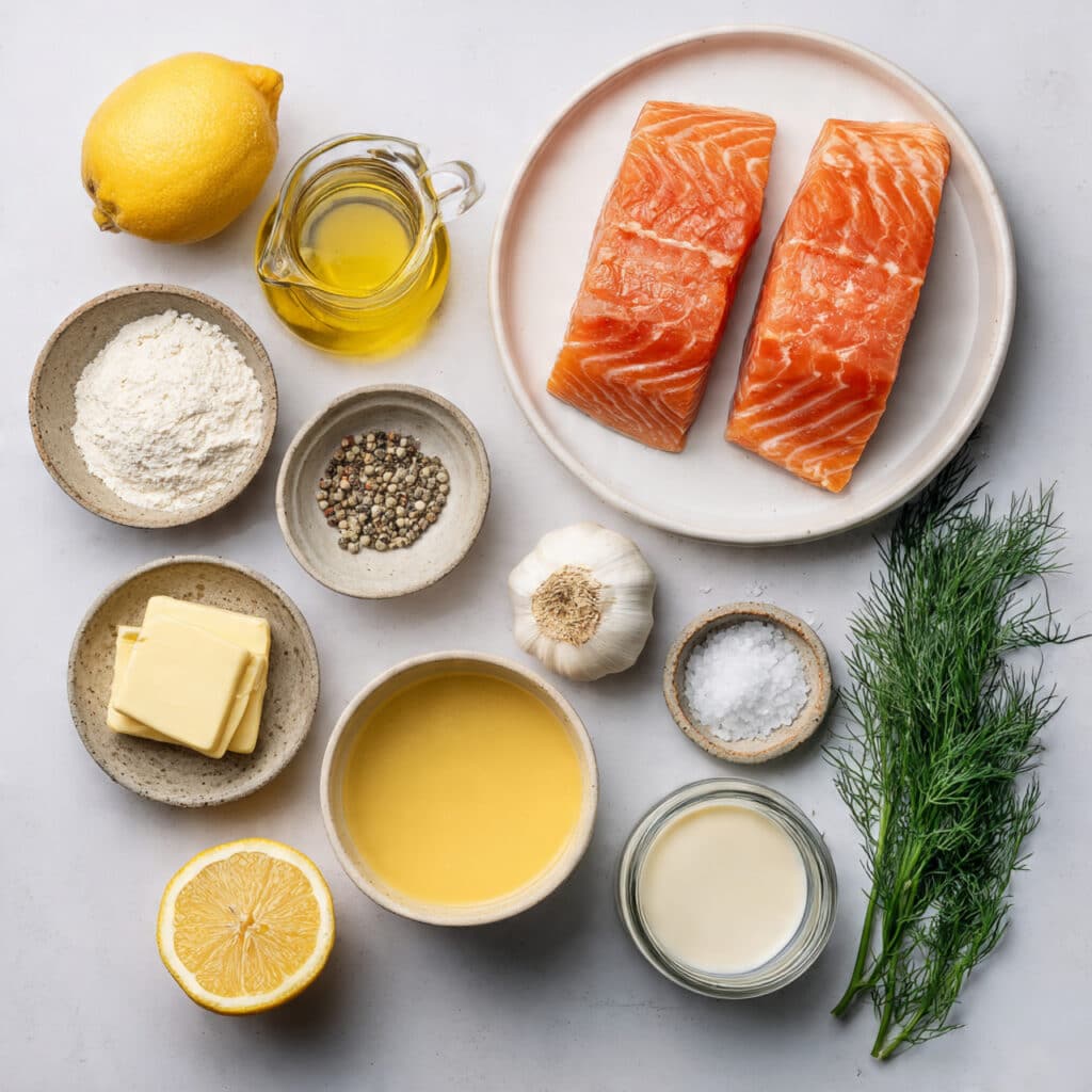 - Puff Pastry Sheet: 1 sheet, thawed. Wraps the salmon in a flaky golden crust.