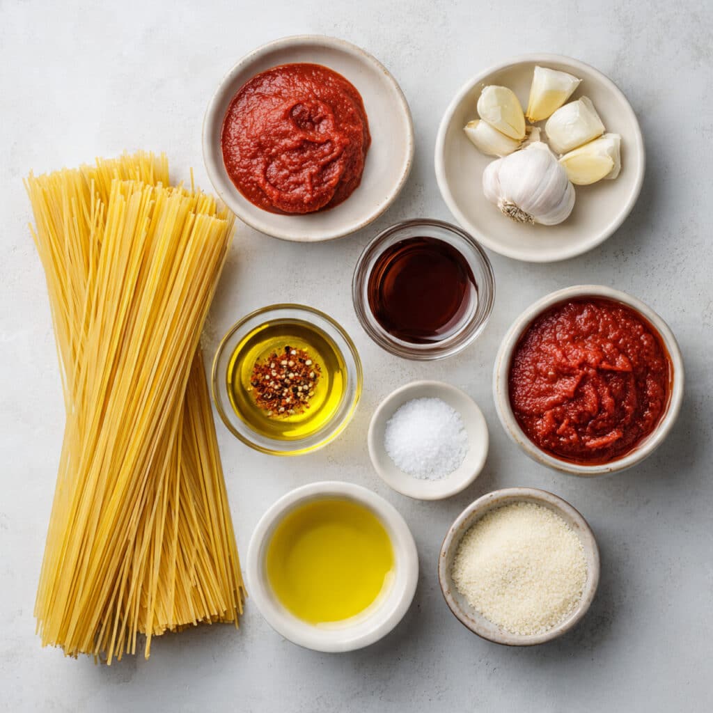 Tomato passata: This is where the smooth body and bold tomato presence come from. It coats the spaghetti evenly and reduces into something concentrated and glossy.