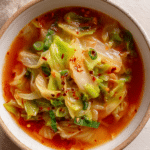 Cabbage-based soups show up in many cuisines around the world, especially in places where simple vegetables are turned into deeply satisfying meals. From Eastern European brothy bowls to spicy Asian-inspired versions, cabbage has always been valued for how well it absorbs flavor. This version leans into warmth and spice, creating a comforting yet lively soup that feels both familiar and fresh.