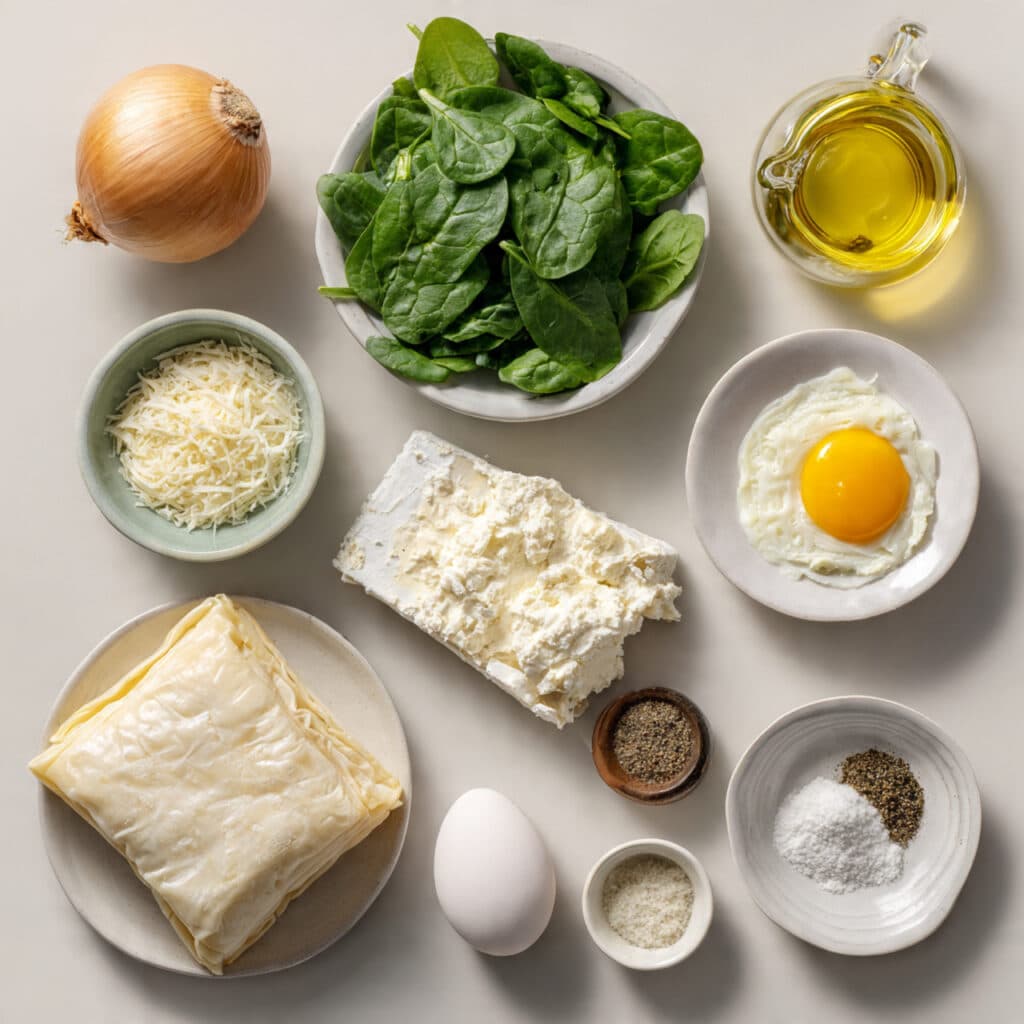 Spinach: Spinach keeps the filling from feeling too heavy. Its earthy flavor and vibrant color bring balance, freshness, and that savory note that makes the cheese taste even better.